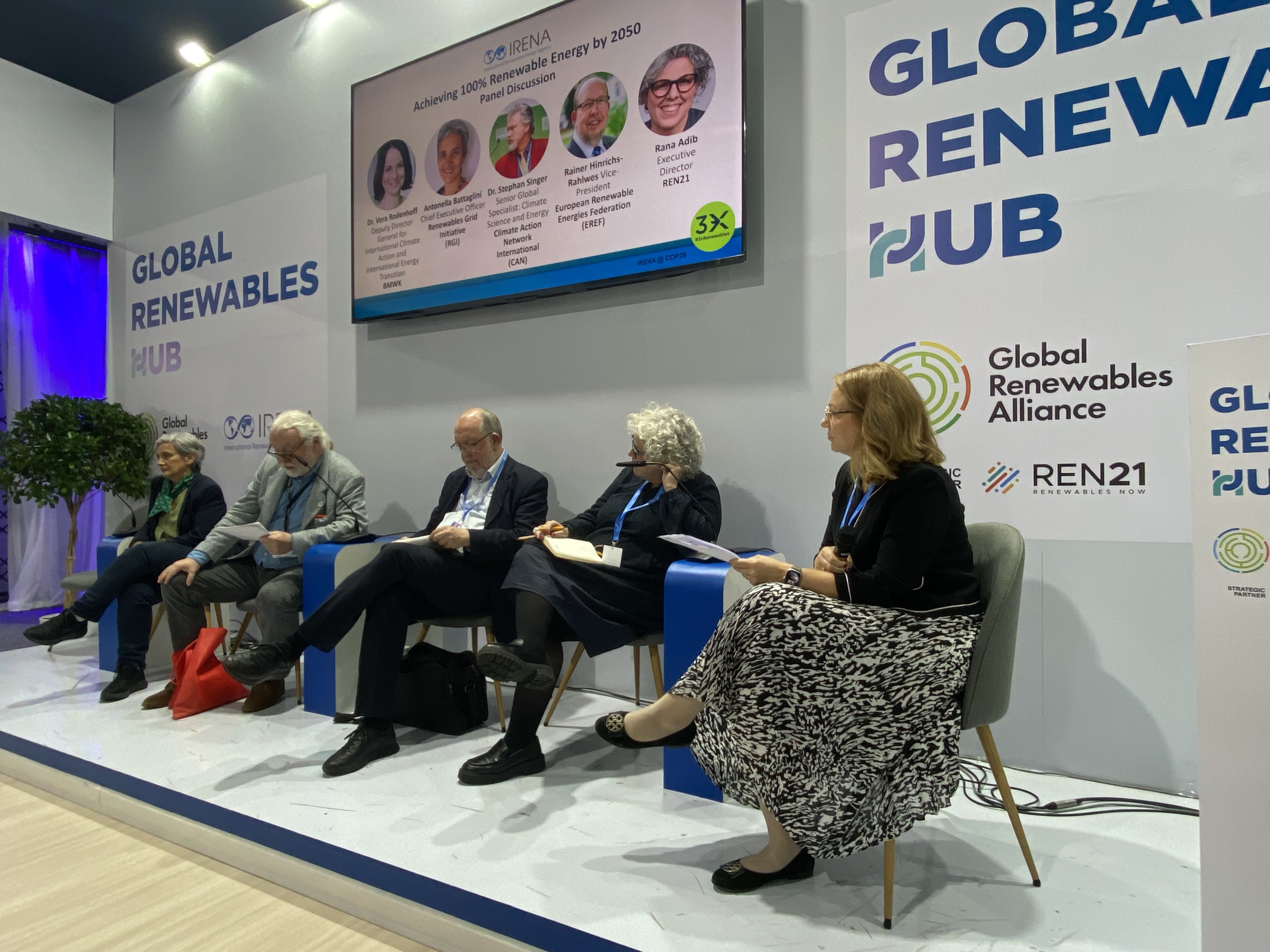 На прошлой конференции КОП28 в Дубае страны пообещали стремиться к утроению мощностей возобновляемой энергетики и удвоению среднегодового темпа повышения энергоэффективности в мире к 2030 году, а также постепенно отказываться от ископаемого топлива. На мероприятии Международного агентства по возобновляемой энергетике (IRENA) в павильоне Global Renewables Hub эксперты обсудили, как можно увеличить долю ВИЭ во всей энергетике до 100%, а также реалистичность глобальных количественных целей.