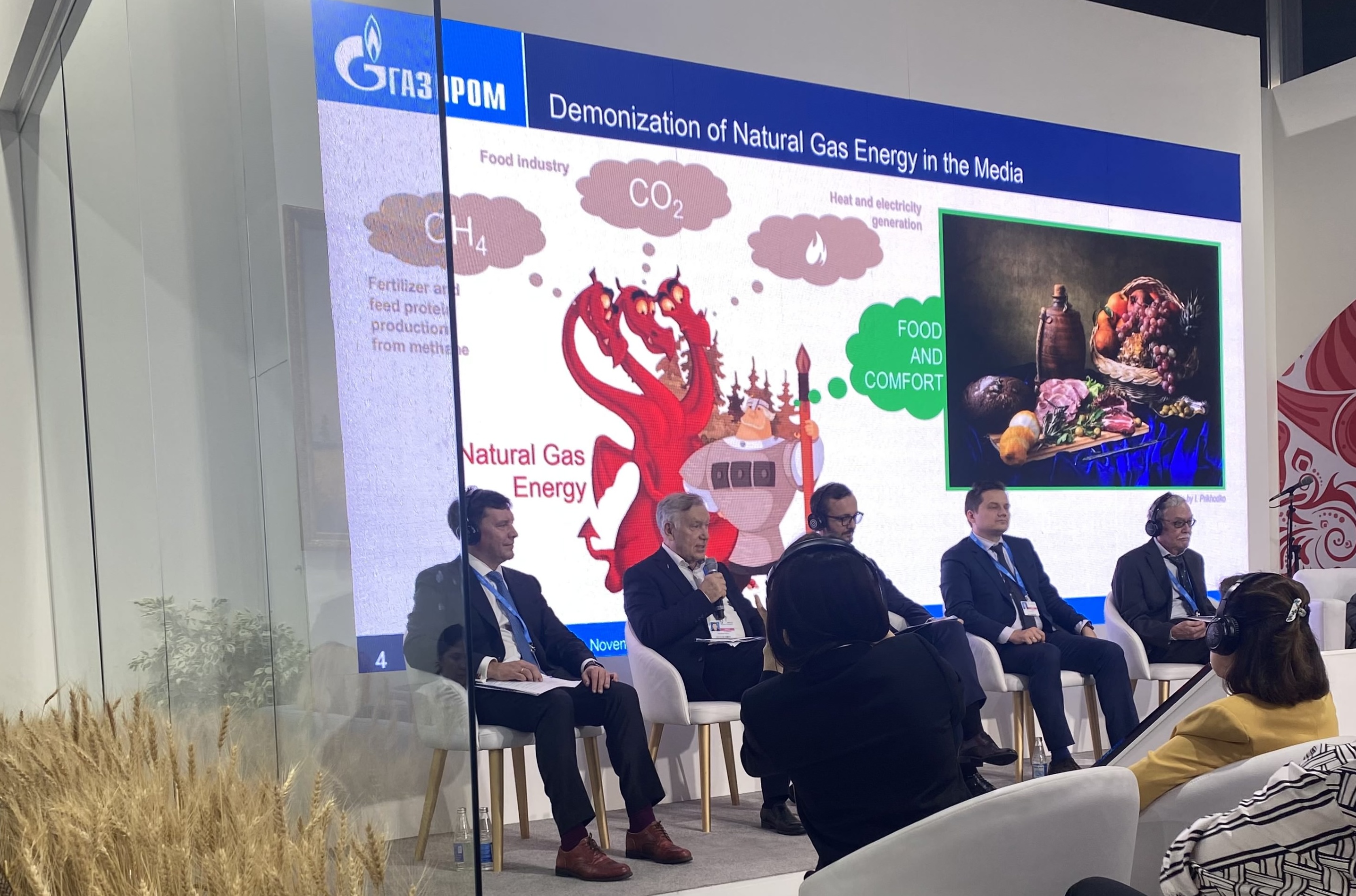 В российском павильоне прошел энергетический день. Спикеры пытались убедить слушателей в том, что с экологической точки зрения природный газ ничем не хуже, чем солнечная и ветровая энергия, нефтяная отрасль намного менее монополизирована, чем сектор ВИЭ, а человечество будет сжигать нефть, газ и уголь вечно. Ну или до тех пор, пока или люди, или ископаемое топливо не закончатся. Интересно, что в формулировке «у них – ВИЭ, а у нас – газ» на месте «них» вместо западных стран несколько раз прозвучал Китай.
