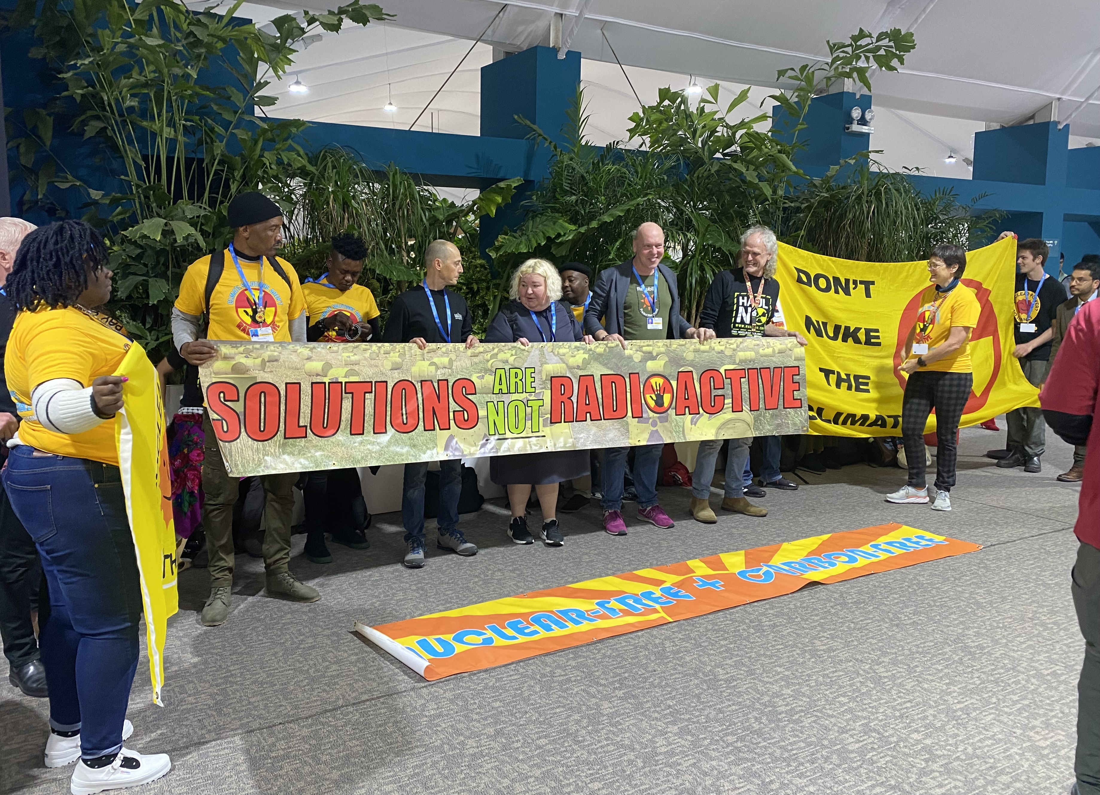 Экологические активисты из международной коалиции «Don’t nuke the climate» провели в понедельник утром акцию против развития атомной энергетики — «ложного решения для климатического кризиса». В акции приняли участие около 25 активистов из Южной Африки, России, США, Германии, Австралии и еще нескольких стран, участвующие в климатических переговорах ООН в качестве наблюдателей от неправительственных организаций.