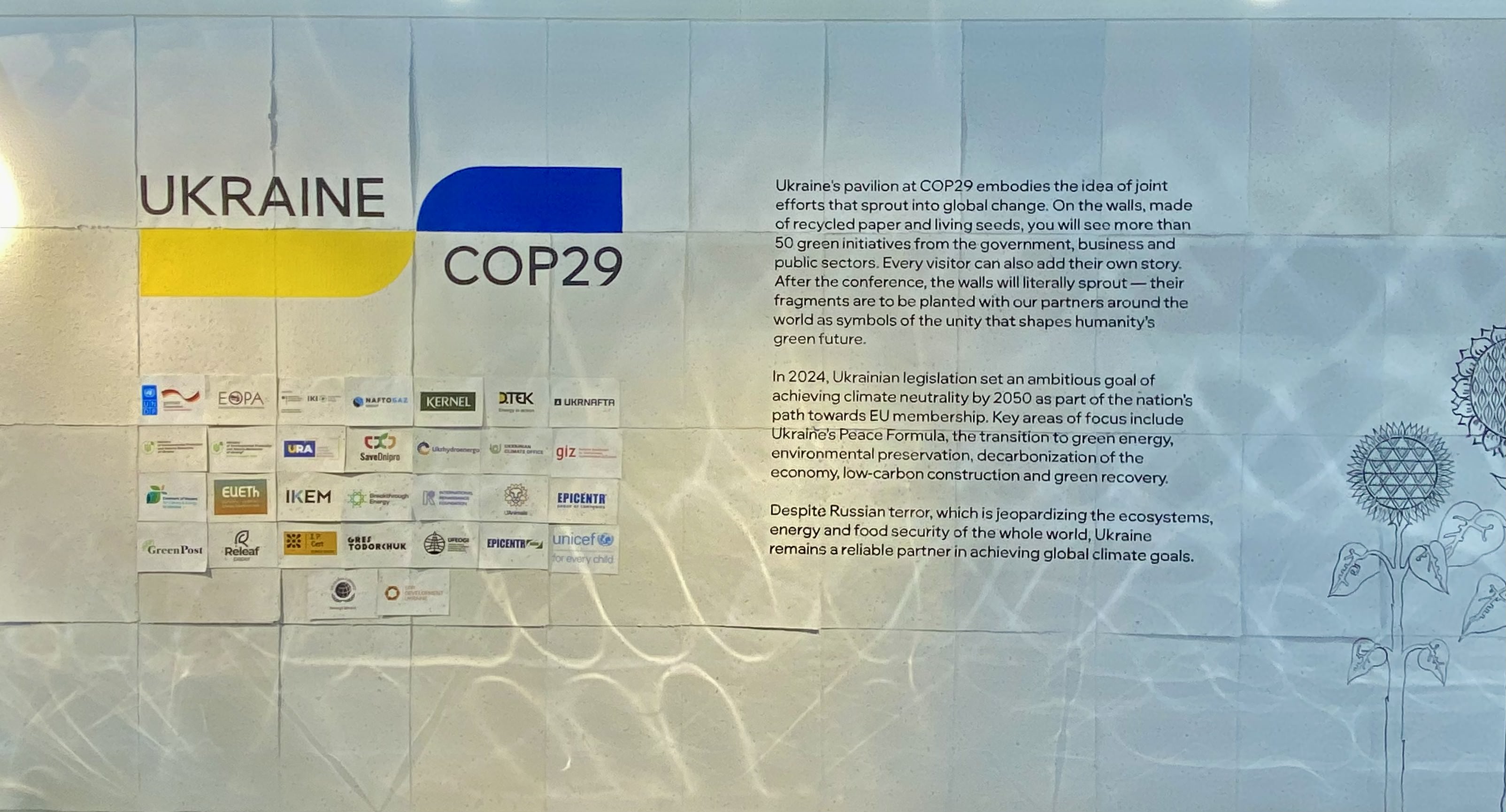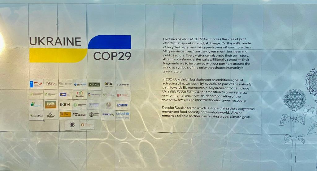 Помимо восстановления украинской энергетики во время войны, а также зеленого энергетического перехода, о которых мы уже писали, в павильоне Украины на КОП29 неоднократно обсуждался экологический ущерб от войны. Во время конференции миновал 1000-й день российского полномасштабного вторжения. За это время Россия лишила жизни и здоровья сотни тысяч украинцев и нанесла огромный экологический ущерб Украине. Этот ущерб должен быть когда-то компенсирован. Однако пока Россия использует климатические и экологические дискуссии для глобальной дестабилизации.